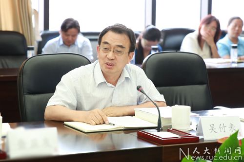 7月7日上午,中國人民大學黨委理論學習中心組召開(擴大)會議,開展“三嚴三實”(嚴以修身)專題學習研討。中組部組織二局副局長劉文,中組部組織二局五處副調研員鮑忠敏出席會議。校黨委書記靳諾主持會議並講話,校長陳雨露出席會議並講話,黨委常務副書記張建明,副校長查顯友,副校長伊志宏,黨委副書記吳付來,副校長洪大用﹔校長助理賀耀敏、黎玖高、吳曉求、郝立新、郭洪林、鄭水泉,黨委各部門和各分黨委、黨總支負責人,有關專家學者參加了會議。