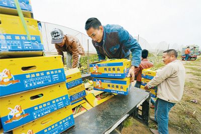 五星級黨組織銀海區福成鎮寧海村黨總支引導村民發展大棚果蔬產業,圖為星級黨員示范基地生產的哈密瓜裝車外運。
