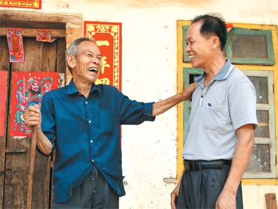 鐵山港區南康鎮高田村黨支部書記、五星級黨員鄧明旭走訪慰問困難老黨員。