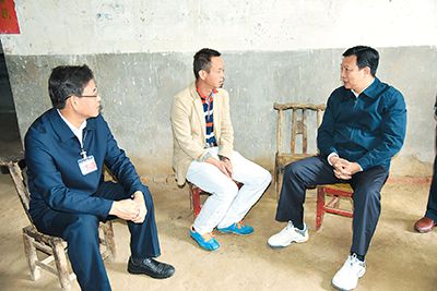 2016年10月14日,楊漢軍(右)在武漢市新洲區調研精准扶貧和災后重建工作。