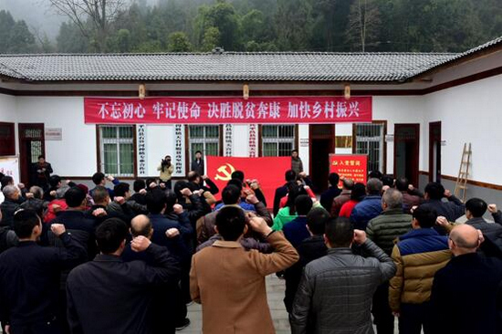 “我志愿加入中国共产党,拥护党的纲领,遵守党的章程……”在新建的村委会办公室外广场上,组工干部和天宫村全体党员,在鲜艳的党旗下重温入党誓词,并在“听党话,感党恩,跟党走”签名墙上签上自己的名字。“30年前,当我举起右手,面对党旗宣誓的时候,我感到好激动,好光荣,今天再次重温入党誓词,感觉自己又回到了那个时候,还是那么年轻,心里感觉好暖和……”已年逾古稀的老党员毛明才显得无比兴奋和激动。