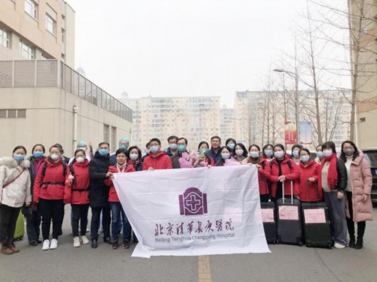 1月27日,清华大学附属北京清华长庚医院医护团队从京出发,驰援武汉。