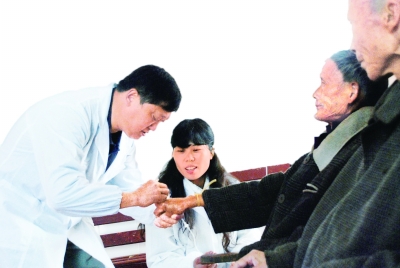村里的泥泞道见证了他的执着,卫生所的处方笺诉说着他的博爱,乡亲们都离不开他……