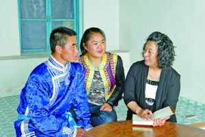 梅园雪(右一)到牧民家中讲解十八大精神。 孙佳超 摄