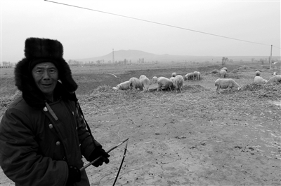1月14日,大同县东阁老山村一名段姓村民在放羊。他借钱买了30只羊准备以此致富。
