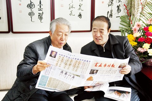 图为市委书记董洪运看望我市著名书法家陈巨锁先生。记者 陈宝 摄