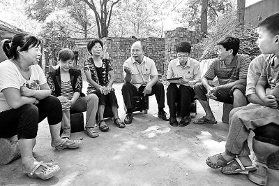 闫胜义(右一)竭尽全力去温暖和帮助当事人。记者王铮摄