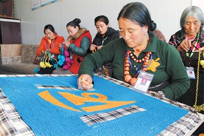 青海省妇联依托“妇女之家”平台,把文化和技能培训延伸到偏远贫困区,有效提高妇女就业创业本领。图为久治县藏族妇女接受刺绣编织技能培训。