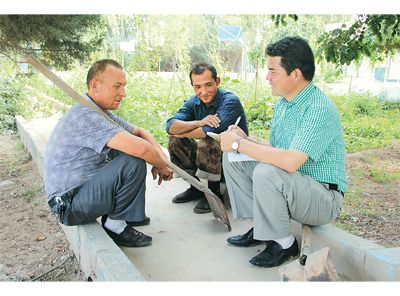 近日,新疆温宿县组织党员干部进村入户开展“知民情、解民忧、帮民困”活动。图为佳木镇托万克佳木村党员干部了解群众生产生活情况。