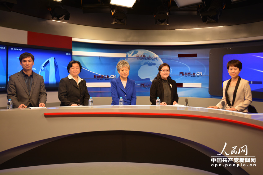 嘉宾与人民网主持人(人民网记者 王金雪 摄)