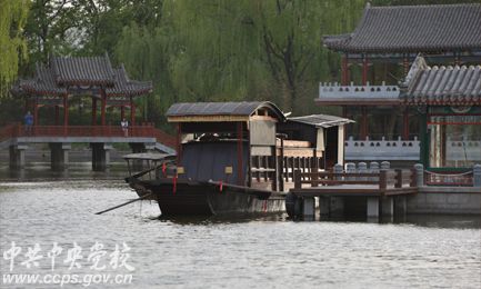 一大红船是中国共产党诞生的重要历史见证,彰显着“开天辟地、敢为人先的首创精神,坚定理想、百折不挠的奋斗精神,立党为公、忠诚为民的奉献精神。”学习弘扬“红船精神”是党校学员党性教育的重要内容,是对党员领导干部党性意识和革命精神的再锤炼和再鞭策。2015年,正值习近平同志提出“红船精神”十周年,浙江省嘉兴市委、市政府仿制了一艘“红船”赠予中央党校,放置在掠燕湖上,与红色雕塑相映生辉。