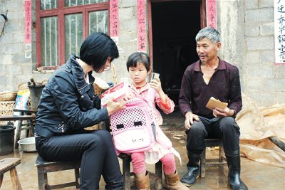 织金县党员干部利用周末走访慰问困难群众,为小孩送去书包、笔记本、水彩笔等学习用品。