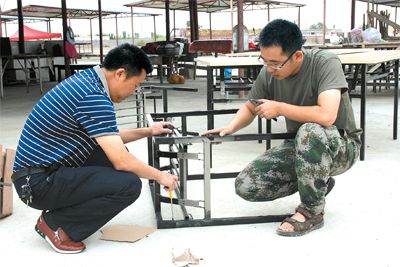 近日,新疆乌什县阿合雅镇巴扎村驻村工作组筹集资金2000余元,帮助贫困户玉苏普·艾山开设小吃摊位,助其致富增收。图为工作组成员为小吃摊安装设备。