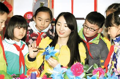 美丽的“志愿者姐姐”给泉山区管道社区的孩子们带来精美花艺。