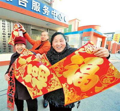经济技术开发区桥南头社区春节“送福”,社区群众乐开了花。