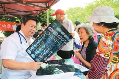 市中心医院党员志愿服务队在社区举办大型义诊活动。