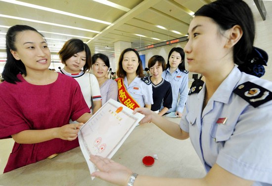 8月4日上午,南京市鼓楼区国、地税联办大厅里人来人往,前来办税的纳税人络绎不绝。而在大厅的一角,时常传来阵阵欢乐的笑声。原来,由国、地税联办的“军嫂创业办税体验日”活动正在有序进行。在为服务军嫂设立的“绿色通道”窗口前,一名“省级首席办税员”正在热情地接受军嫂们的咨询。