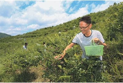 紫云自治县猫营镇普卡桥村第一书记吕波带领群众利用荒山荒坡种植蓝莓,在退耕还林中增加群众收益。