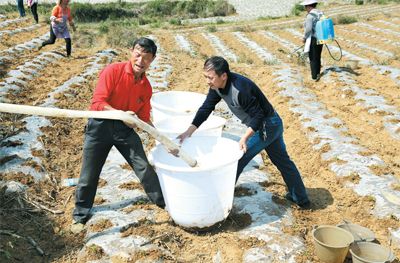 在“双书记”帮助下,平坝区塘约村成立合作社,并组织村两委带领社员进行抽水浇苗等农事活动,提高生产效率。