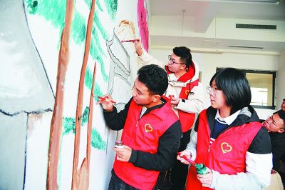 强化政治引领是巩固和扩大党执政的青年群众基础的重要途径。图为江苏省连云港职业技术学院的大学生们在教室里把社会主义核心价值观和中国梦等元素融入绘画内容。光明图片