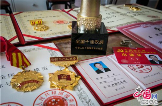 王平当选十九大党代表,荣获三八红旗手,全国十佳农民等奖项。中国网记者 伦晓璇 摄