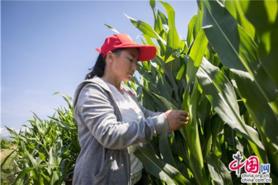 王平到地里查看玉米长势情况。中国网记者 伦晓璇 摄