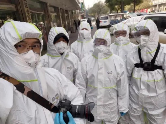 所以,除了穿着密封的防护服、带着憋气的口罩和起雾的护目镜摄影、记录、采访,消毒、消毒、再消毒,是前方记者每天必做的功课。