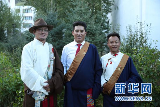 玉树州基层干部学院一期学员江加多杰(左一)和同学在一起。新华网记者焦鹏摄