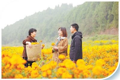 四川省德阳市旌阳区纪检监察干部(右、中)在菊花产业园了解群众需求。 |